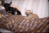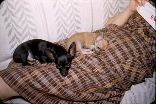 Cindi and Pico (aka The Evil One) Peters dogs. On Muriel Peach's lap.